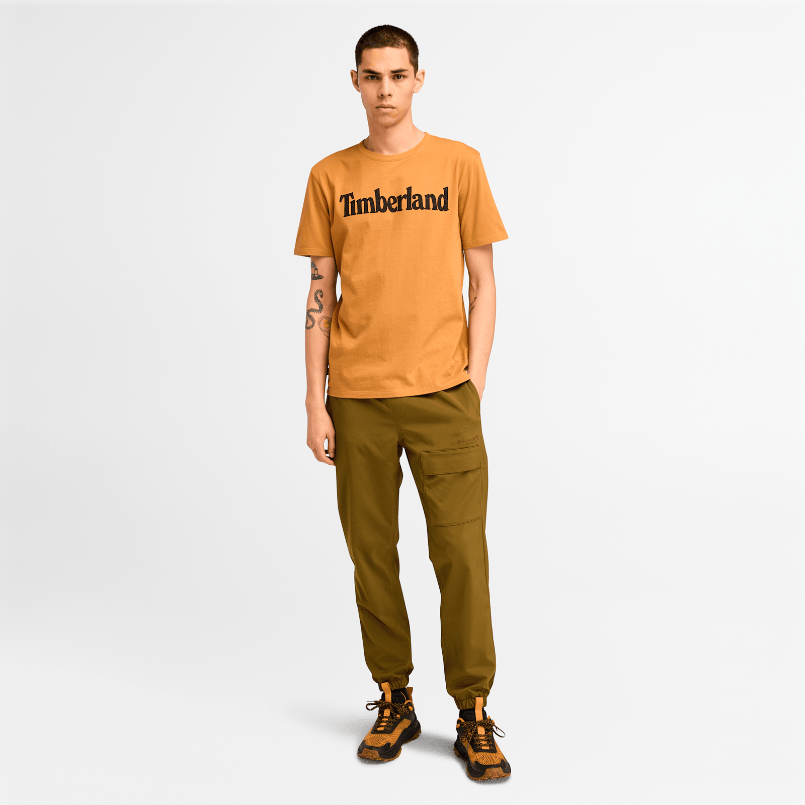 This lightweight, 100% cotton T-Shirt features a bold Timberland wordmark logo and a comfortable regular fit. Soft, breathable, and easy to wear—it's a staple for everyday style with a signature edge.