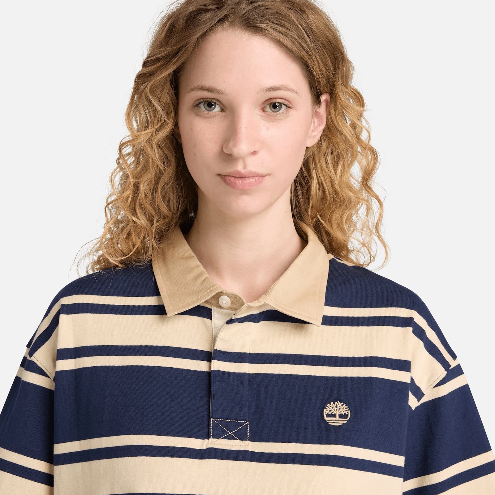 This short-sleeve polo offers a fresh take on the classic rugby stripe, blending heritage style with character and comfort in 100% cotton. Finished with a polo neck, button opening, and embroidered Timberland Tree logo.