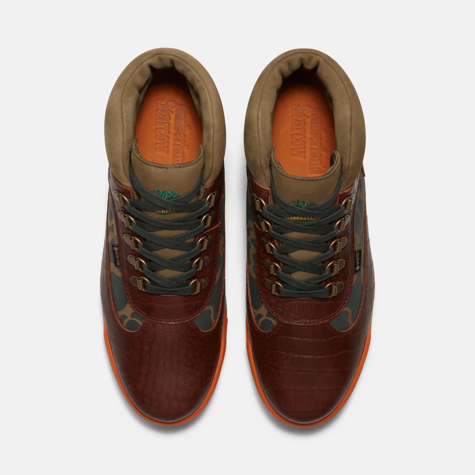 The Timberland x Starcow Field Boot is an homage to 1990s New York City, reimagining our classic Field Boot with rich crocodile-textured leathers and bold camouflage elements. A premium Timberland® leather upper, PrimaLoft® insulation, waterproof GORE-TEX technology, and a durable Vibram outsole give you all you need for the elements, while the style gives you all the edge everywhere else.