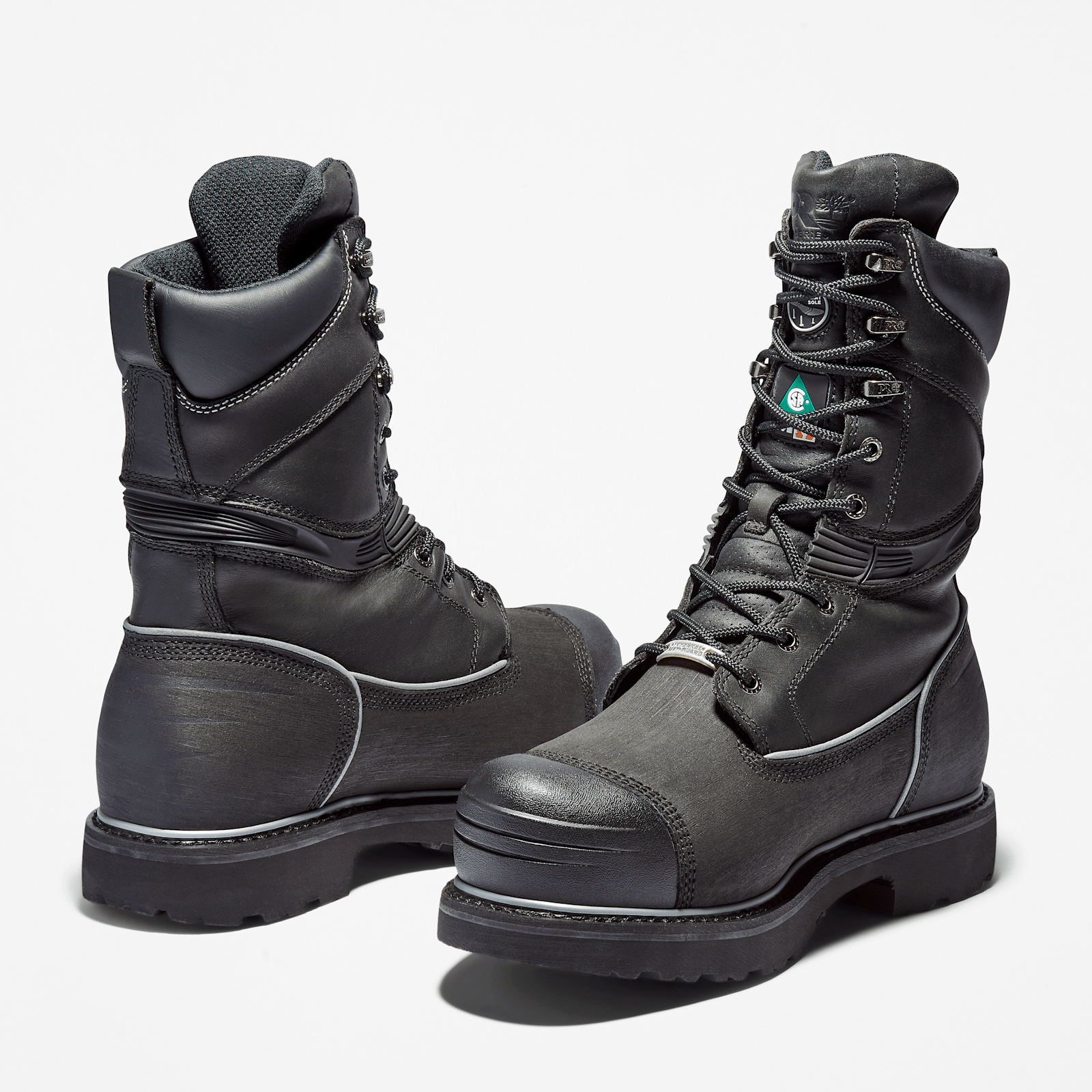 If you need protection from water, cold, heat, impacts, compression, punctures, electrical hazards, blood-borne pathogens, slipping, and abrasions, our Gravel Pit 10" tall boots cover all those bases, plus you get all-day comfort and legendary durability. First, we use premium Timberland® full-grain waterproof leather uppers with Ever-Guard™ leather in strategic zones to shield from abrasions, internal waterproof membranes to provide maximum security from water intrusion and blood-borne pathogens, and 400 grams of insulation for warmth when the temperature drops. Then, we added steel safety toes, internal metatarsal guards, flex bands in the shafts for comfort when bending and sitting, steel shanks for support, our exclusive Independent Suspension Network™ (ISN™) system for superior control, support, and agility, and breathable, moisture-wicking linings made of ReBOTL™ fabric containing at least 50% recycled plastic with an antimicrobial treatment for odor control. Finally, for confident, all-weather traction, we use heat-, oil-, slip-, and abrasion-resistant rubber outsoles with Ladder Lock™ heels that help grip ladder rungs.