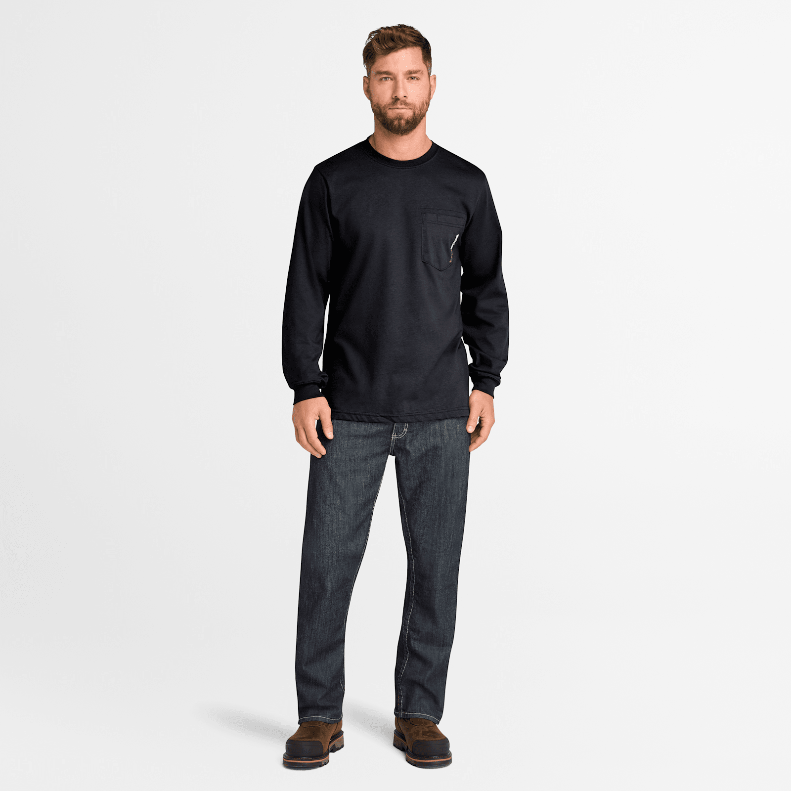 Made from flame-resistant, 100% cotton jersey, our men's Cotton Core long-sleeve tee helps keep you safe on the job and off the clock. Features include our WickWork™ moisture-wicking technology to help keep you dry and built-in UPF 50+ protection to help block the sun's harmful rays. Comfortable worn as a base layer or alone, this tee has a reinforced chest pocket with the Timberland PRO logo to let everyone know you mean business. Plus, you'll find the original fit gives you plenty of room to move throughout the shoulders, chest, waist, and sleeves.