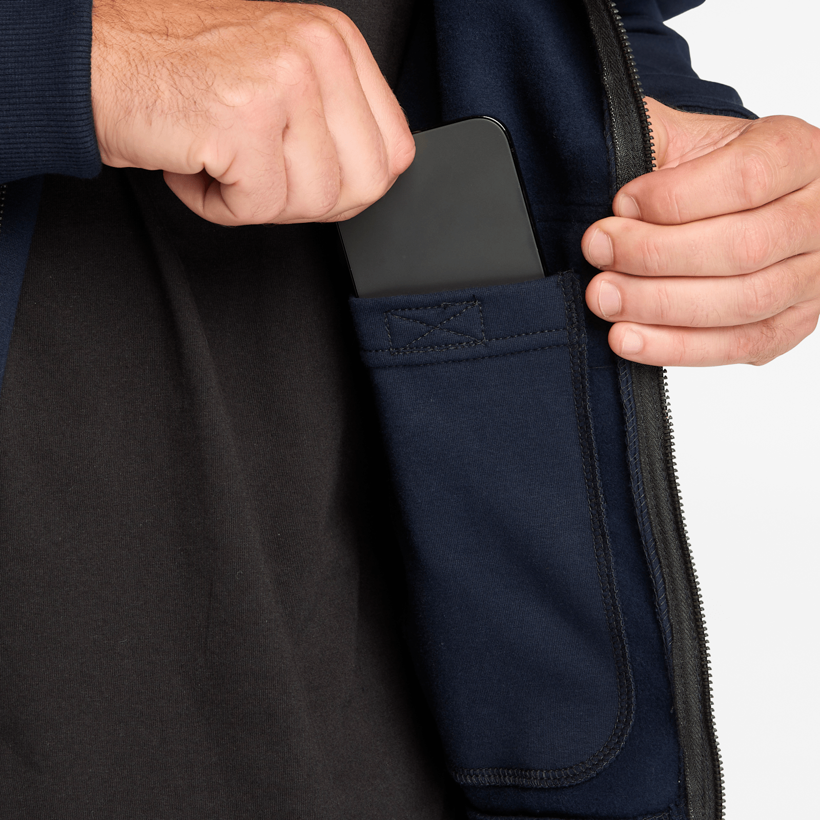 Our flame-resistant Hood Honcho hoodie helps keep you safe on the job and off the clock. Made from a cotton-blend stretch fleece, this heavyweight full-zip sweatshirt offers features designed for enhanced comfort and mobility, like raglan sleeves for full range of motion and an adjustable, three-piece hood that is designed to stay in place better. There's even a hidden insert to stash your cell phone inside the generous front pouch pocket.