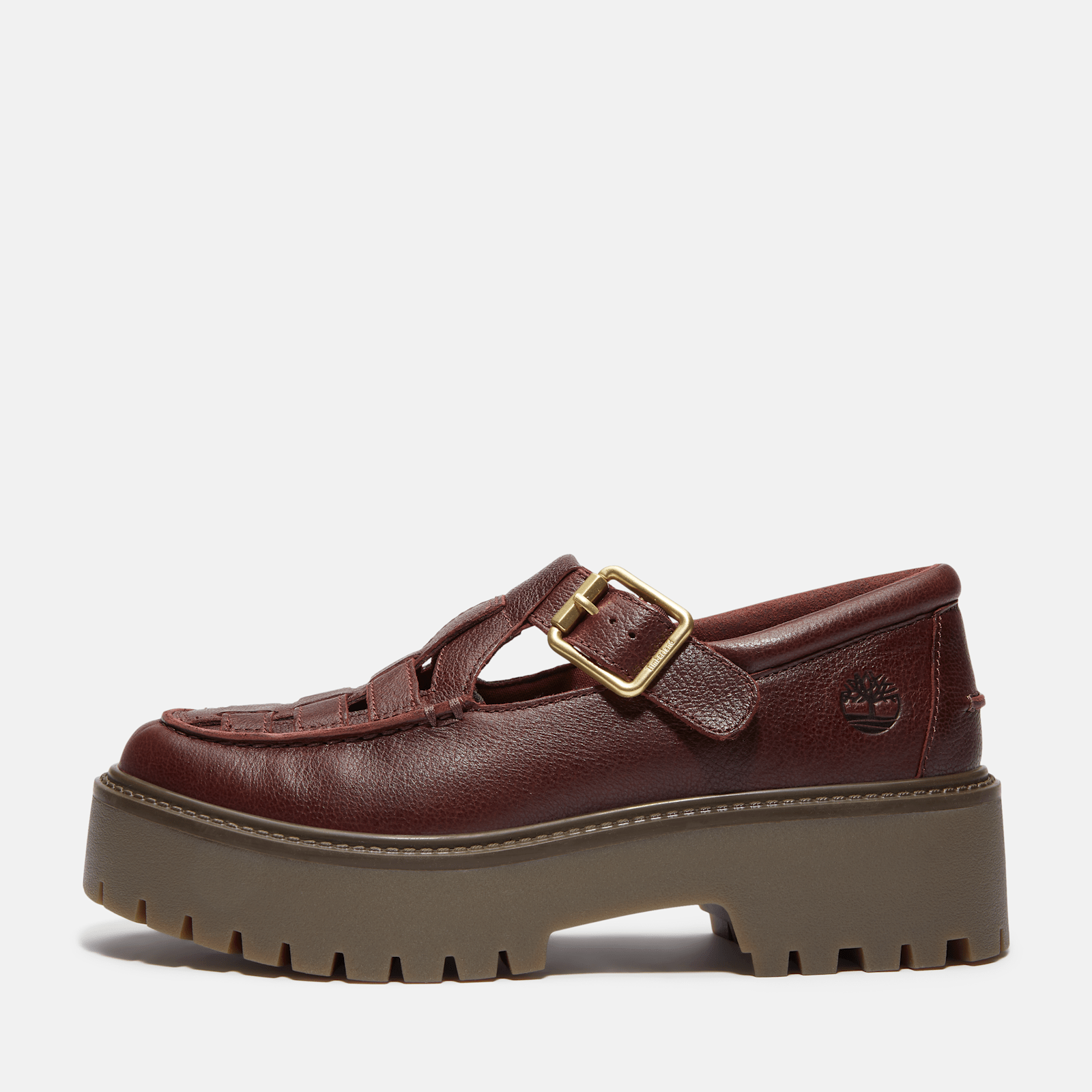 The Stone Street Platform Buckle Shoes are a modern take on a timeless shoe updated with a flexible style that helps take you through your entire day in comfort. Made with Premium Timberland® Leather upper and a ReBOTL fabric lining made from 50% recycled PET plastic. 55% of the rubber in the outsole is sourced from farms committed to regenerative agriculture. Inside, an OrthoLite® insole helps deliver cushioned comfort.