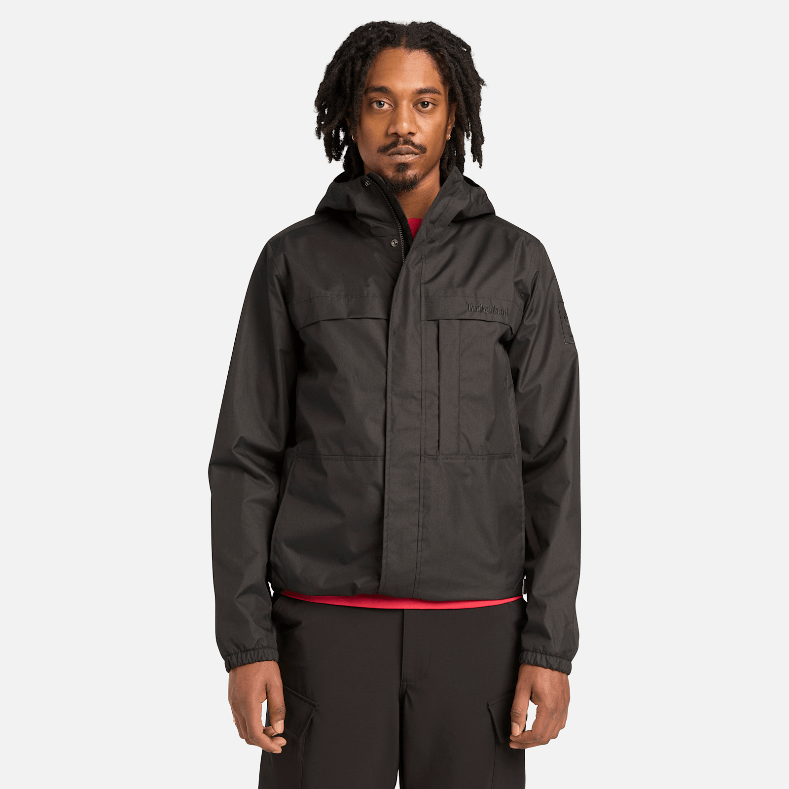 Discover the Timberland Men's Benton Waterproof Shell Jacket designed for wet, windy weather. It’s made from 100% ReBOTL™ fabric containing at least 40% recycled PET plastic. The waterproof technology ensures you’ll stay dry and protected. The adjustable hood, woven collar, and fully sealed chest and hip pockets help make this a jacket for any adventure.