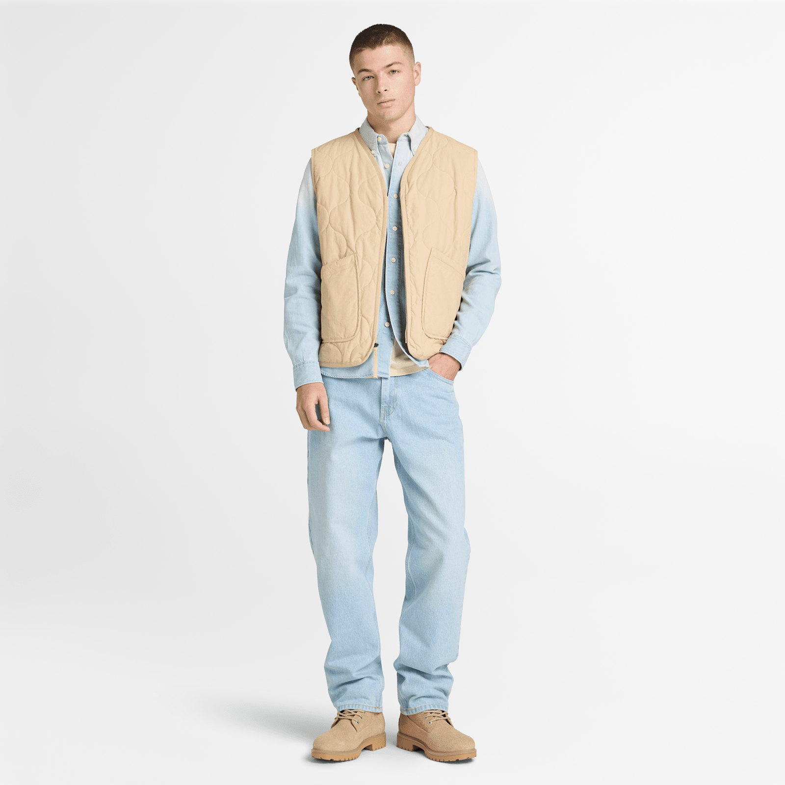 Designed for comfort so you can move easily, our Men's Denim Shirt is made with 67% cotton and 33% TENCEL™ Lyocell. It features a button opening, button-down collar, and a regular fit.