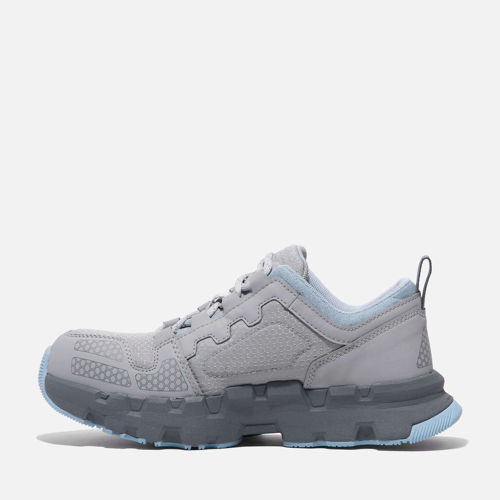 The latest in our Timberland PRO® line of athletic work shoes and designed specifically for women, the Powertrain EV offers more flex, stability, and lightweight performance, but they're all business when it comes to protection. Not only are they tough enough to handle working on your feet all day with their durable, metal- and mutilation-free uppers of ripstop nylon with premium Raptek microfiber, they feature composite safety toes and electrical hazard protection for an extra margin of safety. Their breathable, moisture-wicking linings are made of ReBOTL™ fabric containing at least 50% recycled plastic with an antimicrobial treatment for odor control. You'll also appreciate their aggressively styled, but lightweight, Anti-Fatigue Technology EVA midsoles and breathable polyurethane footbeds for extra shock absorption and energy return. Plus, our heat-, oil-, slip-, and abrasion-resistant, non-marking Timberland PRO® rubber outsoles offer superior traction.